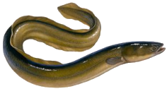 Spíše vodní had. Úzké dlouhé tělo, žije u dna. Dnes ohrožený pro nespočet překážek, které se staví v tocích. Tip: před úpravou stáhnout aby se nezkroutil, dobré je jej naložit předem. Velmi málo kostí.